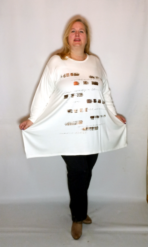 Удлиненная туника А-силуэта выполнена из высококачественного, трикотажного полотна с 95% содержанием вискозы.