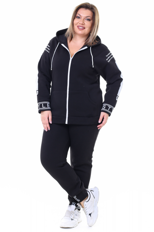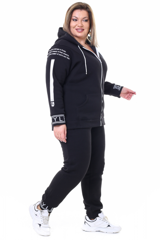 Симпатичный костюм для дома, отдыха и спорта выполнен из однотонного  трикотажного полотна. Трикотаж эластичный, к телу приятный, средней плотности на флисовой основе. Костюм состоит из толстовки и брюк.