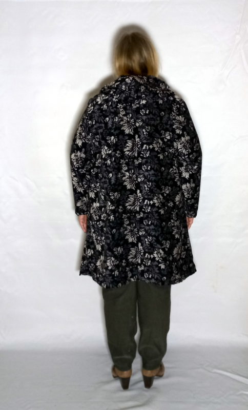 Стильный кардиган-ветровка выполнен из шанель-велюр полотна с интересным принтом. Для отделки использовали тесьму с надписями.