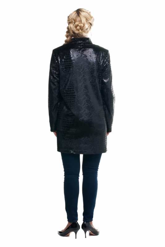 Эффектная стильная удлинённая куртка из прочной ткани с рельефным мерцающим принтом, имитирующим кожу рептилий.