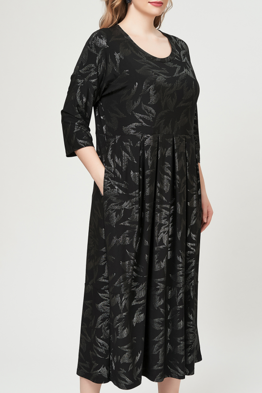 Нарядное платье из струящегося трикотажа - масло с блестящим принтом.