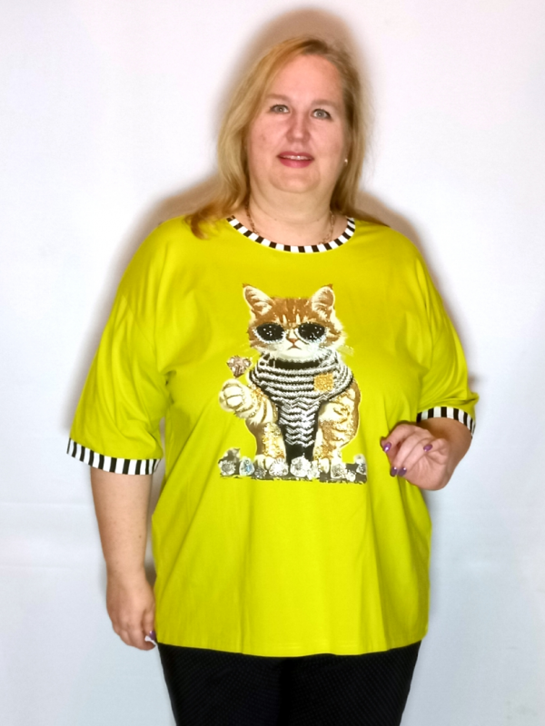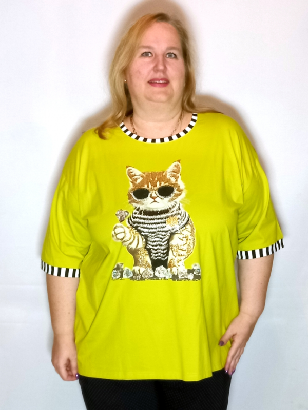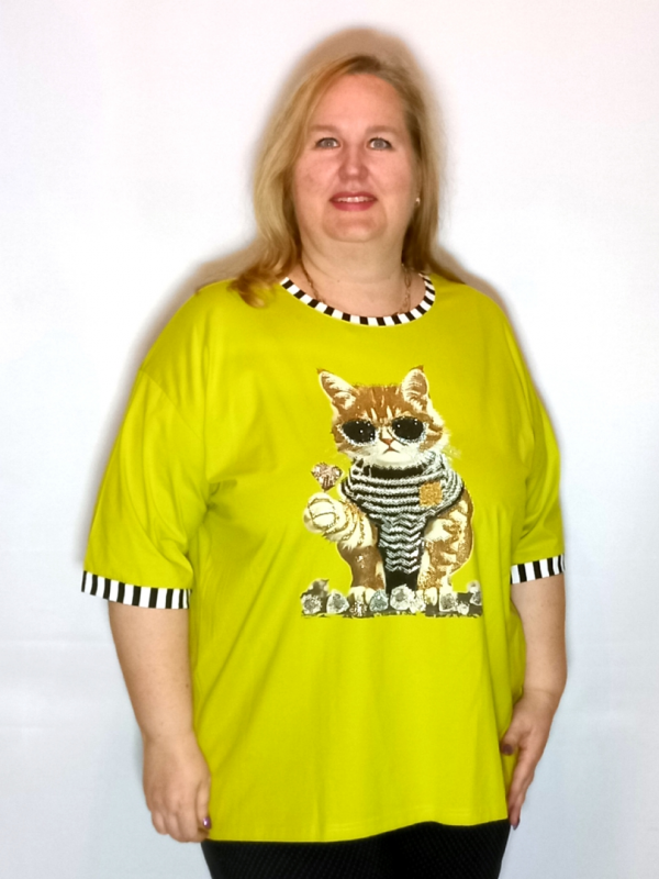 Очаровательная, игривая туника в солнечной расцветке выполнена из хлопкового, трикотажного полотна с добавлением спандекса.