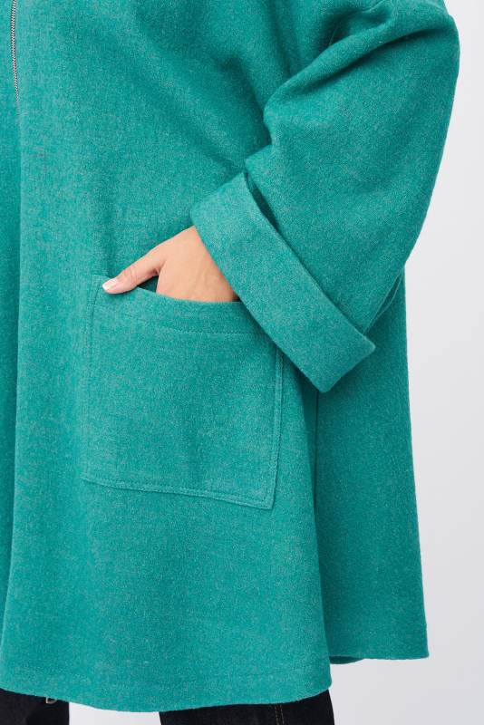 Демисезонное пальто выполнено из однотонного полотна с содержанием шерсти (30%). Изделие без подклада и утеплителя.
